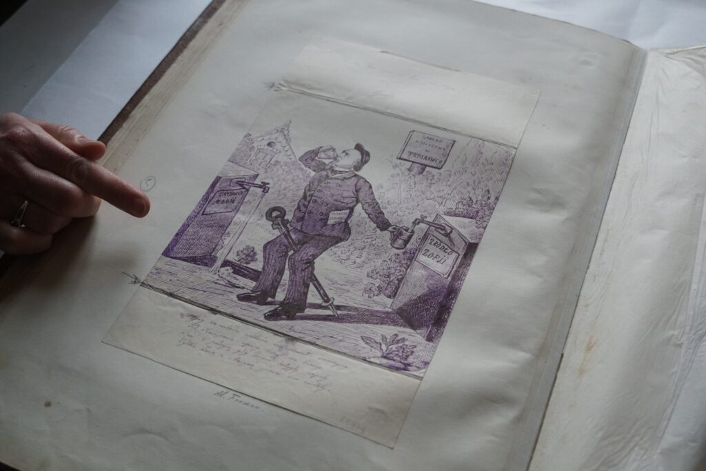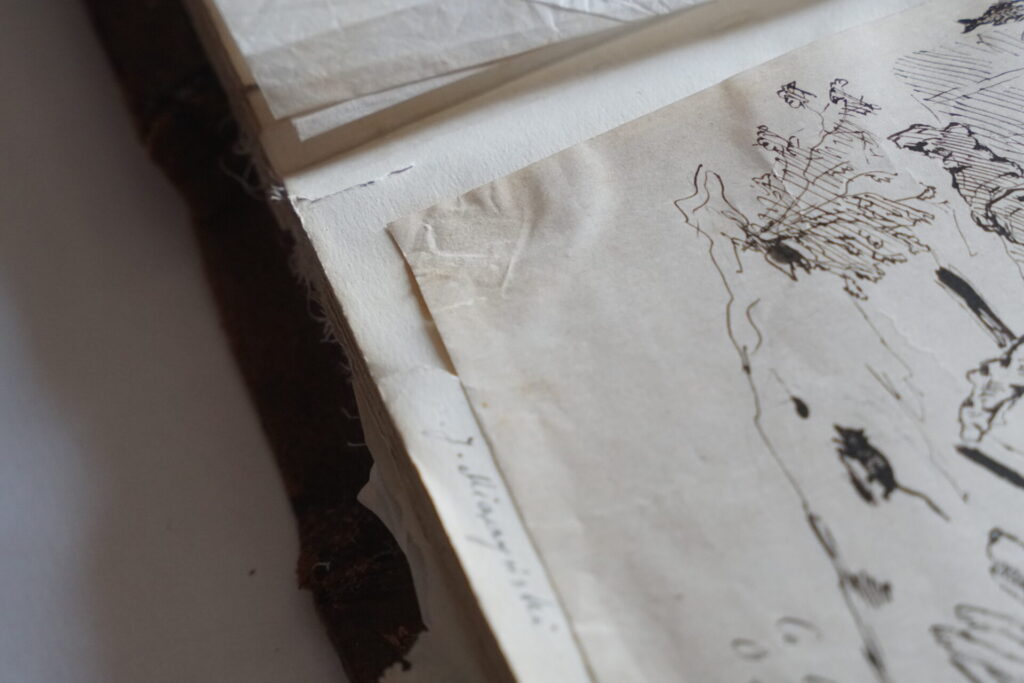 Album, choć na pierwszy rzut oka nie sprawia wrażenia mocno zniszczonego, kryje w sobie wyzwania, które wymagają dużej wiedzy i uważności. Jego wyjątkowość — a zarazem trudność — wynika z samej natury obiektu: to nie jest jednolity rękopis, lecz wielomateriałowa kompozycja dzieł różnych autorów, powstałych w różnym czasie i różnymi technikami. Rysunki wykonywane ołówkiem, atramentami i tuszami o różnym składzie chemicznym oraz akwarele — wszystkie wymagają odmiennego podejścia. Dokłada się do tego różnorodność klejów, którymi przyklejano kolejne prace; ich wzajemne oddziaływanie z papierem i ze sobą nawzajem to jedno z głównych zagadnień, które konserwatorzy muszą rozwiązać, zanim rozpoczną jakiekolwiek działania.