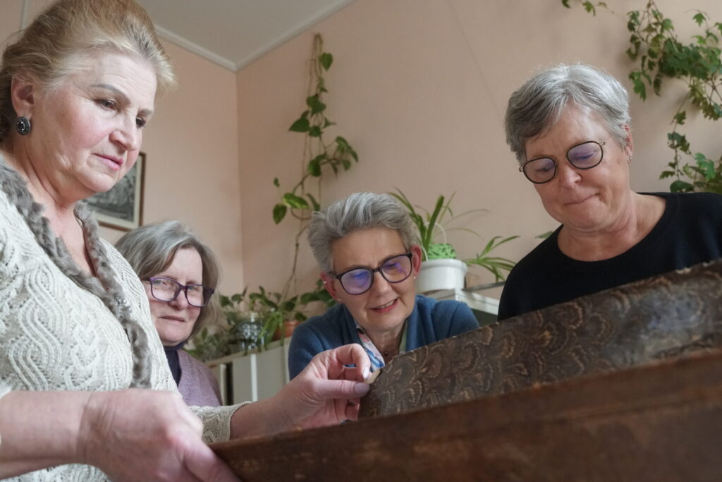 Pracy konserwatorek przyglądali się: Melania Dzieduszycka, Mateusz Dzieduszycki i Jan Kozak ze Związku Rodowego Dzieduszyckich herbu Sas.
